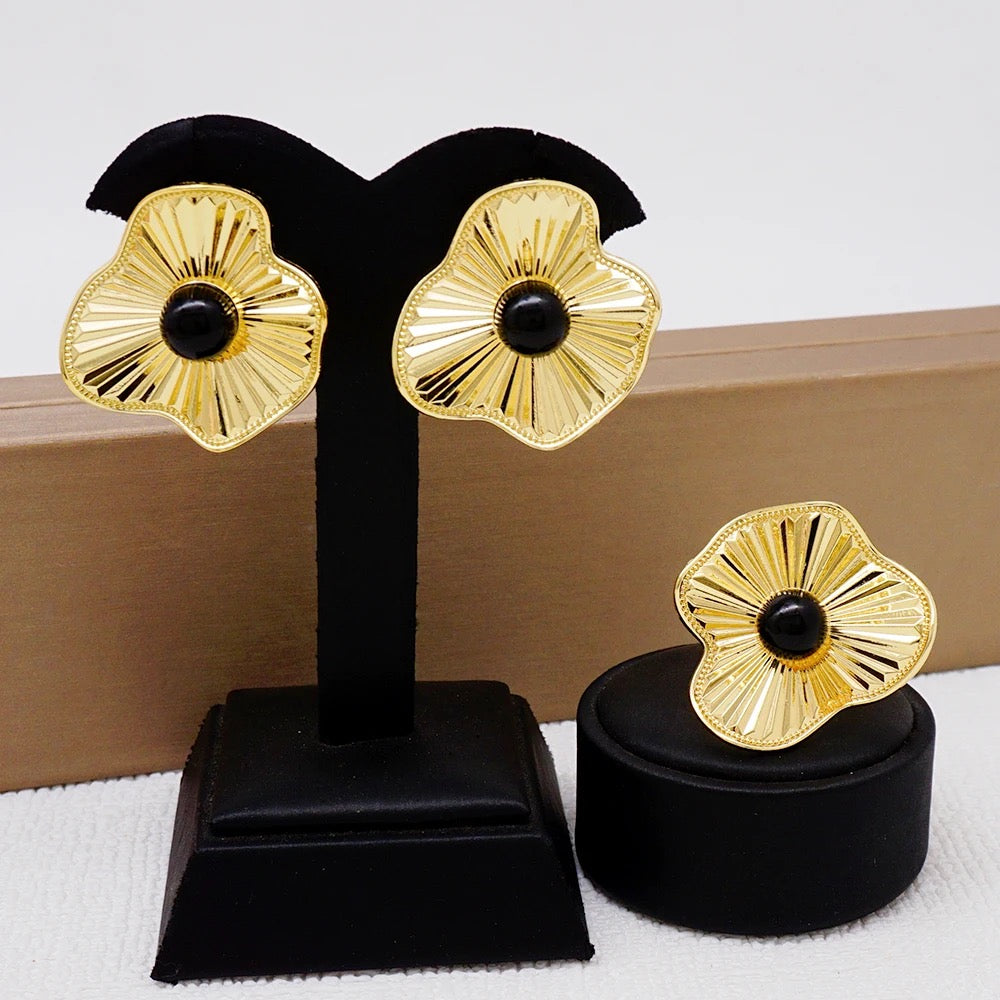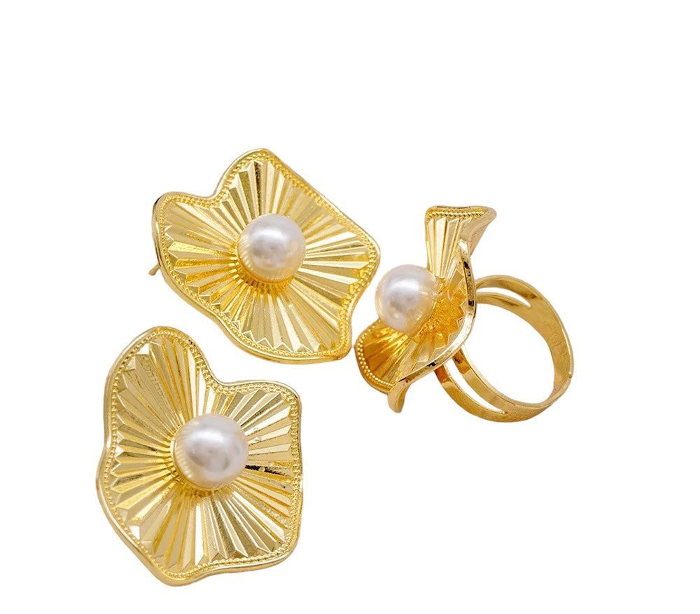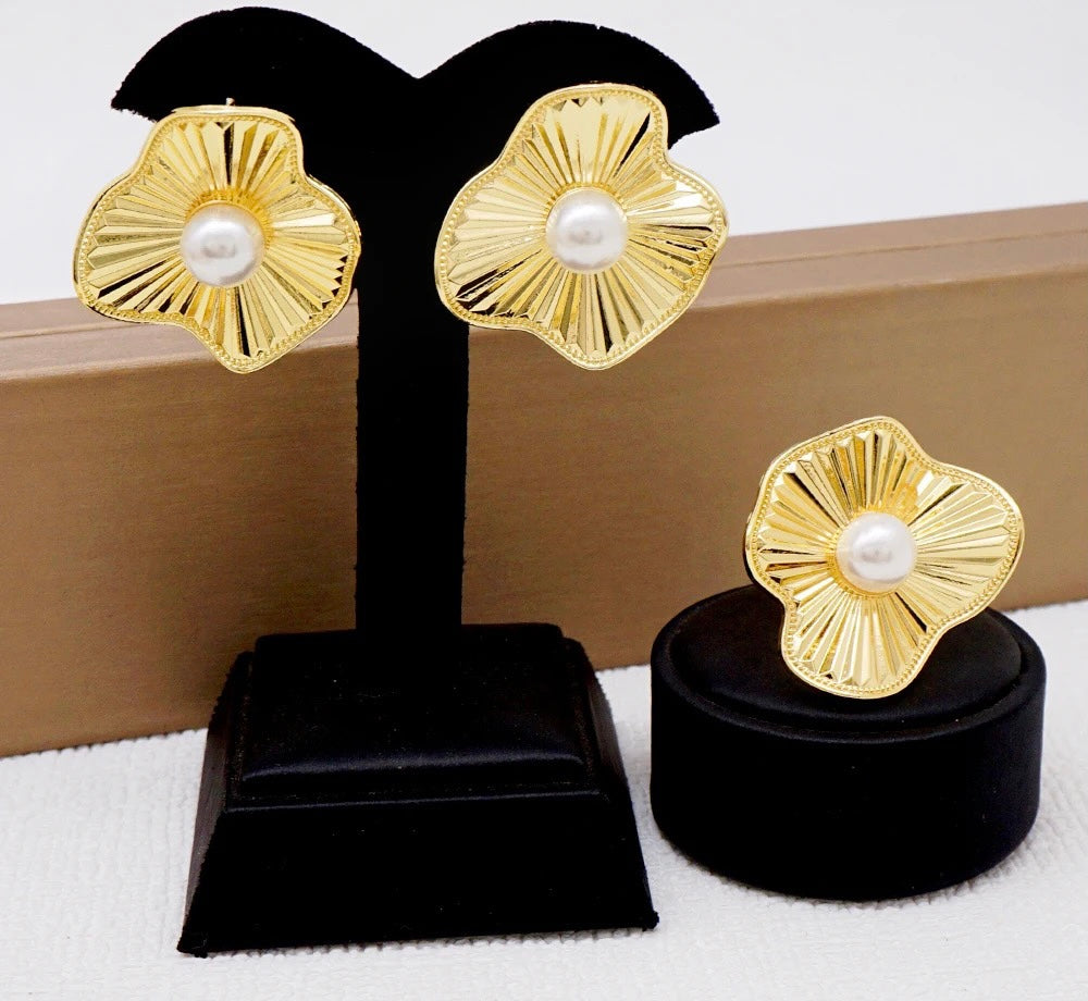 Ce classique vas embellir tous vos look! Un beau mélange d'or et de perle. Cet ensemble est un indispensable et reste intemporel.